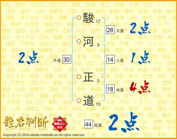 駿河正道さんの総運は44画の2点!