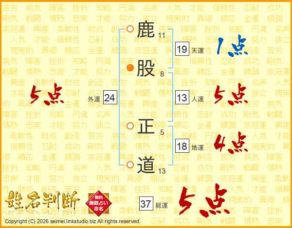 鹿股正道さんの総運は37画の5点!