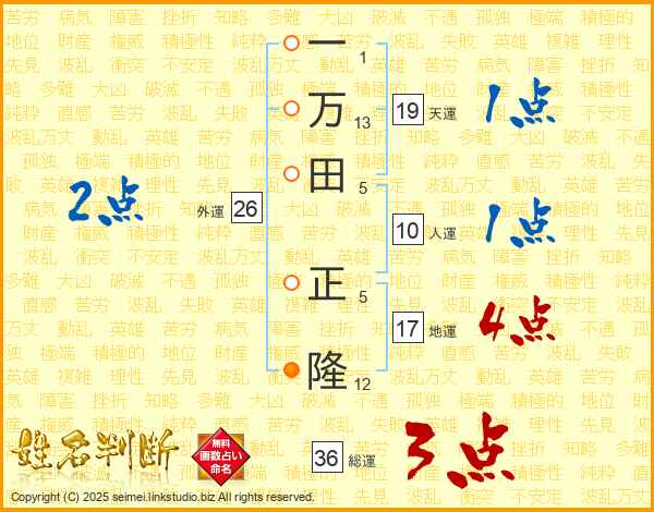 一万田正隆さんの総運は36画の3点!