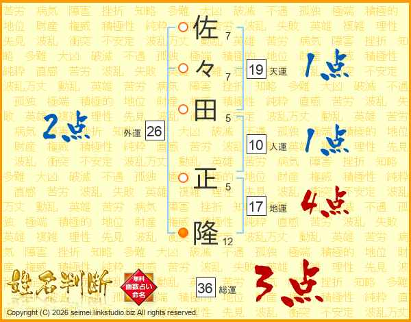 佐々田正隆さんの地運は17画の4点!