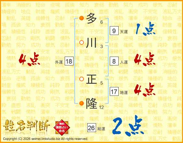 多川正隆さんの人運は8画の4点!