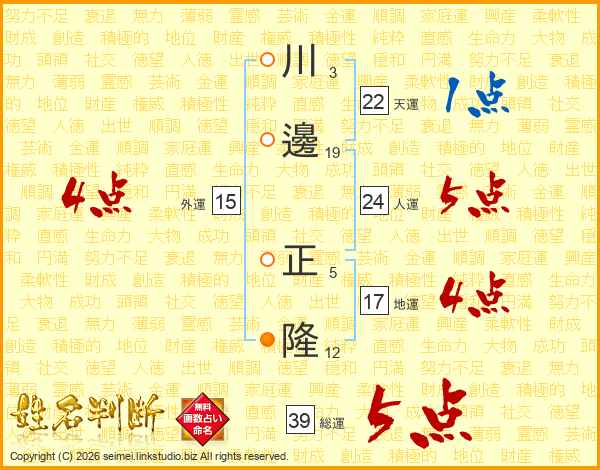 川邊正隆さんの総運は39画の5点!