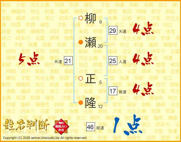 柳瀬正隆さんの人運は25画の4点!