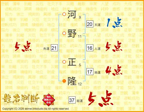 河野正隆さんの総運は37画の5点!