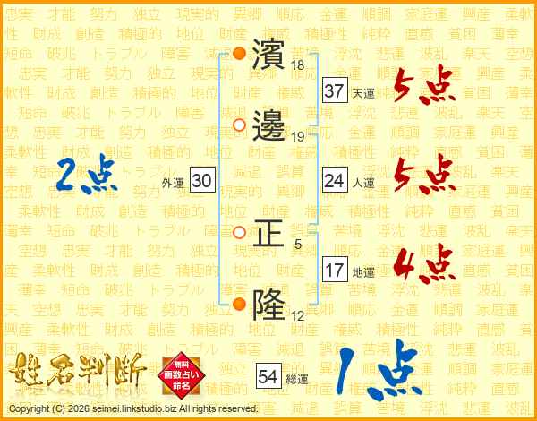濱邊正隆さんの天運は37画の5点!