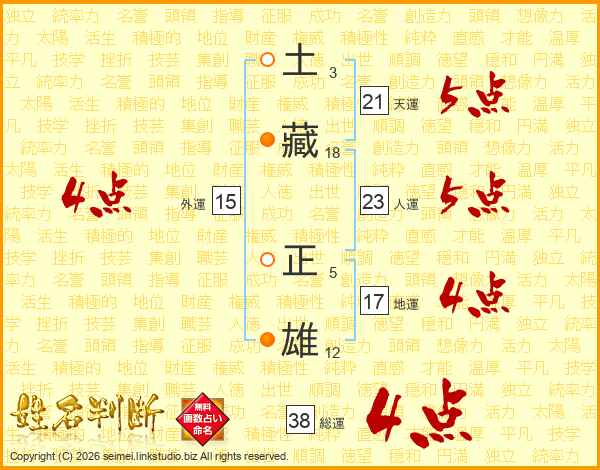 土藏正雄さんの人運は23画の5点!