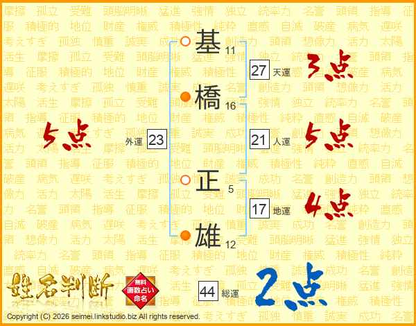 基橋正雄さんの人運は21画の5点!