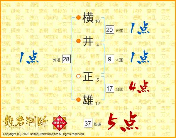横井正雄さんの総運は37画の5点!