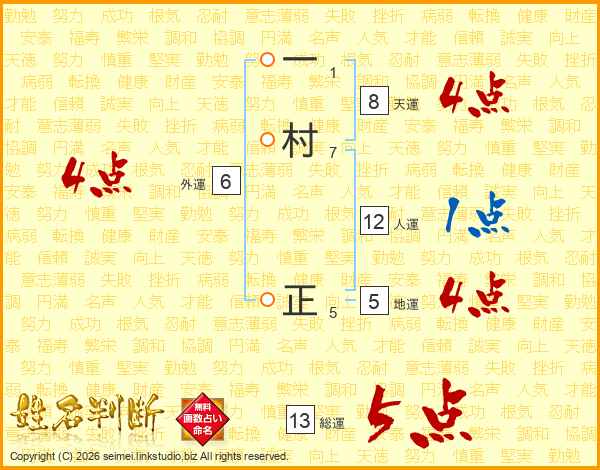 一村正さんの総運は13画の5点!