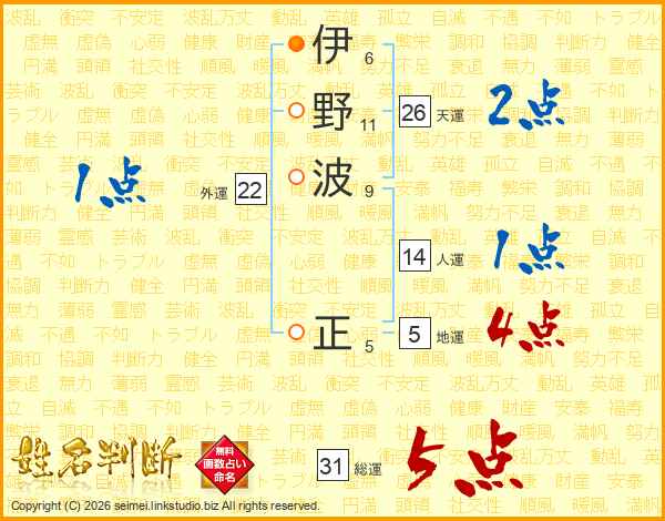 伊野波正さんの総運は31画の5点!