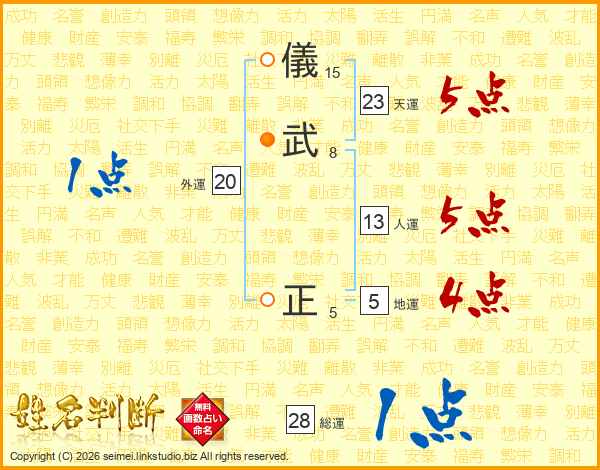 儀武正さんの人運は13画の5点!