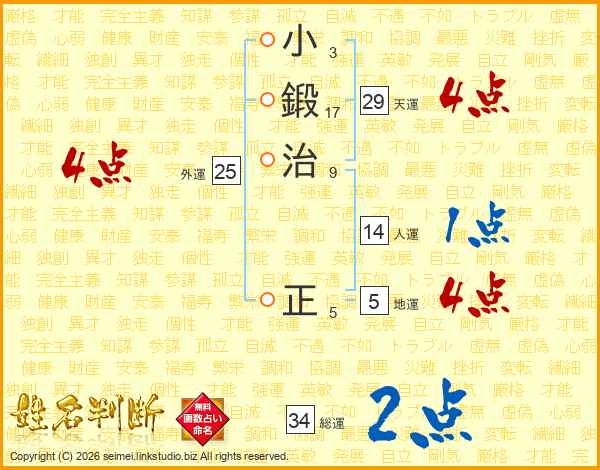 小鍛治正さんの総運は34画の2点!