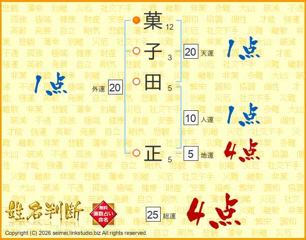 菓子田正さんの総運は25画の4点!