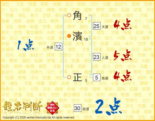 角濱正さんの天運は25画の4点!