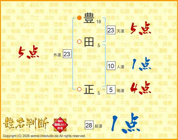 豊田正さんの総運は28画の1点!