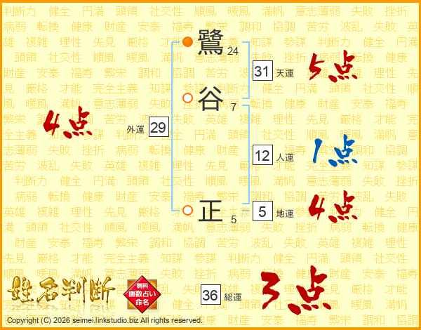 鷺谷正さんの総運は36画の3点!
