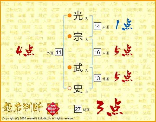 光宗武史さんの総運は27画の3点!