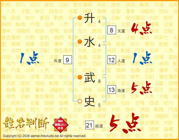 升水武史さんの総運は21画の5点!