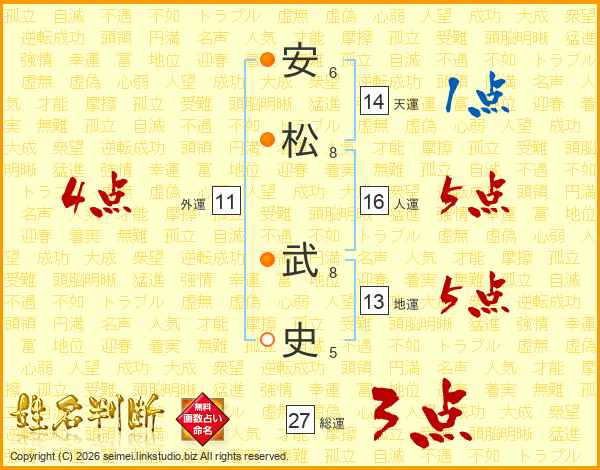 安(6画)松(8画) 武(8画)史(5画)