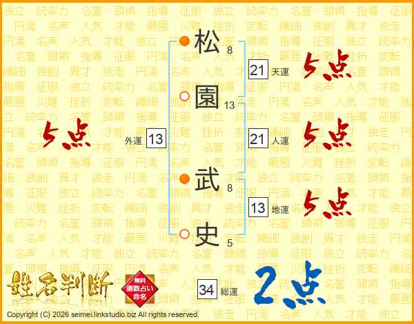 松園武史さんの天運は21画の5点!
