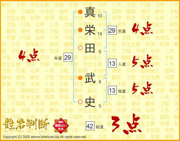 真(10画)栄(14画)田(5画) 武(8画)史(5画)