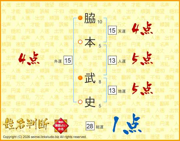 脇本武史さんの総運は28画の1点!