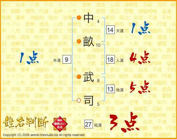 中畝武司さんの人運は18画の4点!
