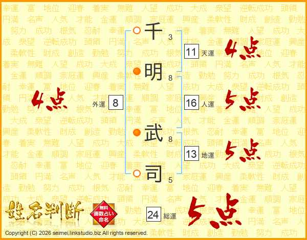 千明武司さんの総運は24画の5点!