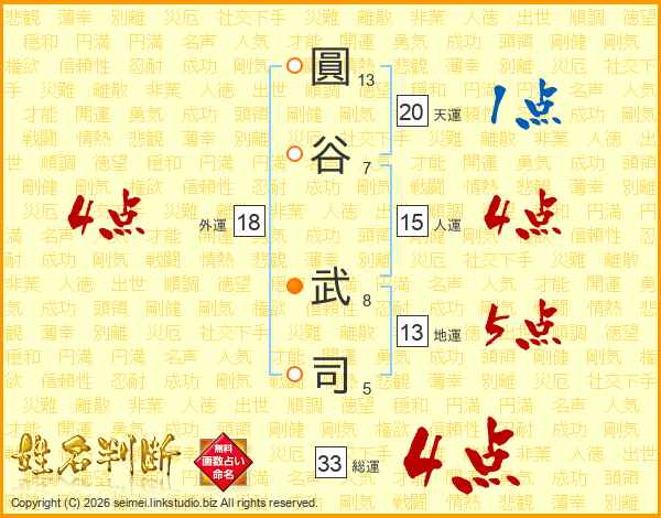 圓谷武司さんの総運は33画の4点!
