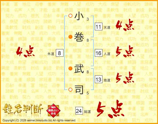 小巻武司さんの総運は24画の5点!