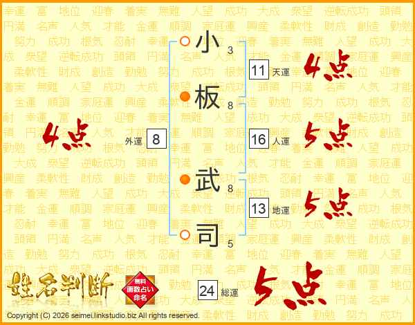 小板武司さんの総運は24画の5点!
