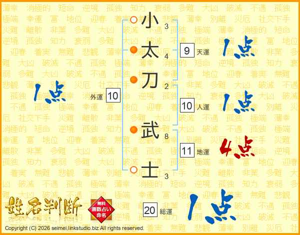 小太刀武士さんの地運は11画の4点!