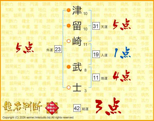 津留崎武士さんの天運は31画の5点!