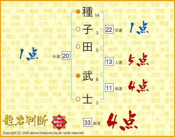 種(14画)子(3画)田(5画) 武(8画)士(3画)