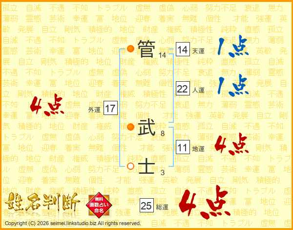 管武士さんの天運は14画の1点!