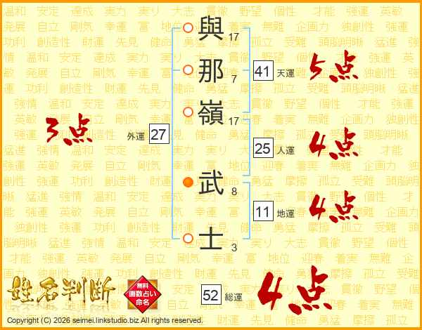 與那嶺武士さんの総運は52画の4点!