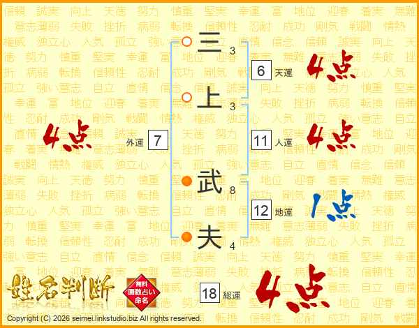 三上武夫さんの総運は18画の4点!