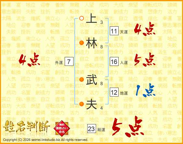 上(3画)林(8画) 武(8画)夫(4画)