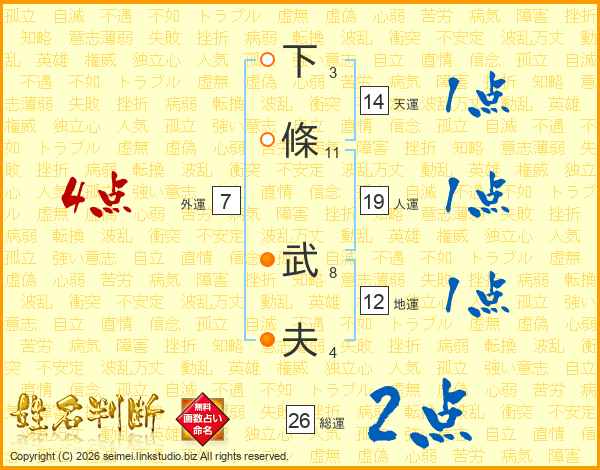 下條武夫さんの天運は14画の1点!
