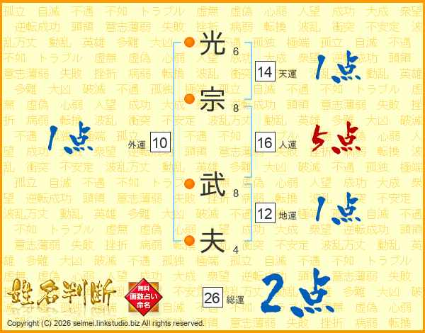 光宗武夫さんの総運は26画の2点!