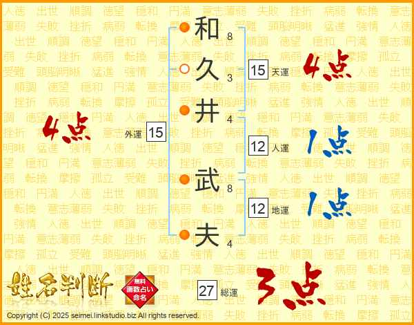 和(8画)久(3画)井(4画) 武(8画)夫(4画)