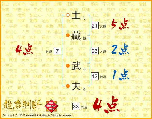 土藏武夫さんの総運は33画の4点!