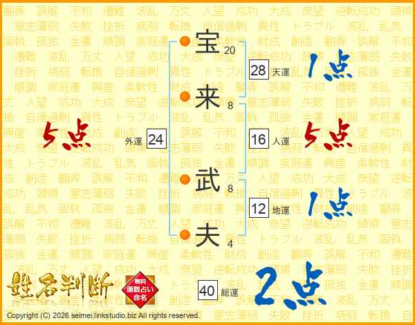 宝来武夫さんの総運は40画の2点!