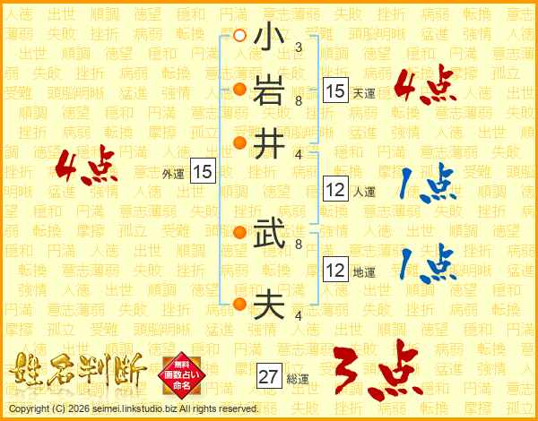 小(3画)岩(8画)井(4画) 武(8画)夫(4画)