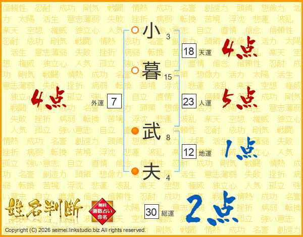 小暮武夫さんの天運は18画の4点!
