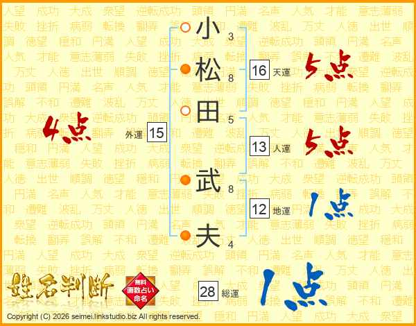 小松田武夫さんの人運は13画の5点!