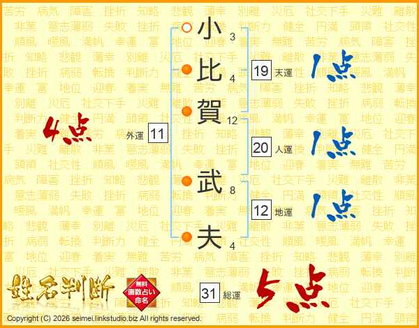 小比賀武夫さんの総運は31画の5点!