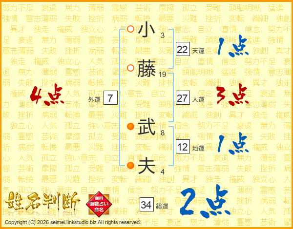 小(3画)藤(19画) 武(8画)夫(4画)
