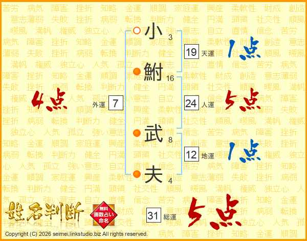 小鮒武夫さんの総運は31画の5点!
