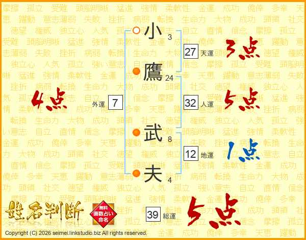 小鷹武夫さんの総運は39画の5点!
